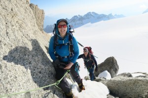 Chamonix Alpine Intro, 15th June – Christine and Simon with Massimo, including skills training on the glacier en route to the Albert Premier hut, Aiguille du Tour, Tete Blanche east ridge, multipitch rock climbing in the valley, Pointe Lachenal traverse, and part of the Arete des Cosmiques.