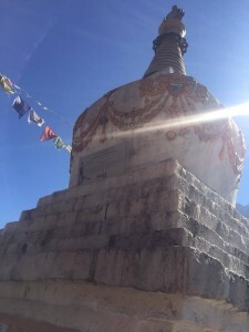 En route we stopped at Tashi Sherpa’s Ama Dablam Lodge. She is a bit of a legend in the area and kindly to let us visit her personal Buddhist shrine, a beautifully and intricately decorated room within her lodge. This was a rare opportunity and the group was treated to her explanation of some of the symbolism, followed by her bestowing a Karta (prayer scarf) on each of us, via her prayer chant giving great karma for the path ahead in our lives.
