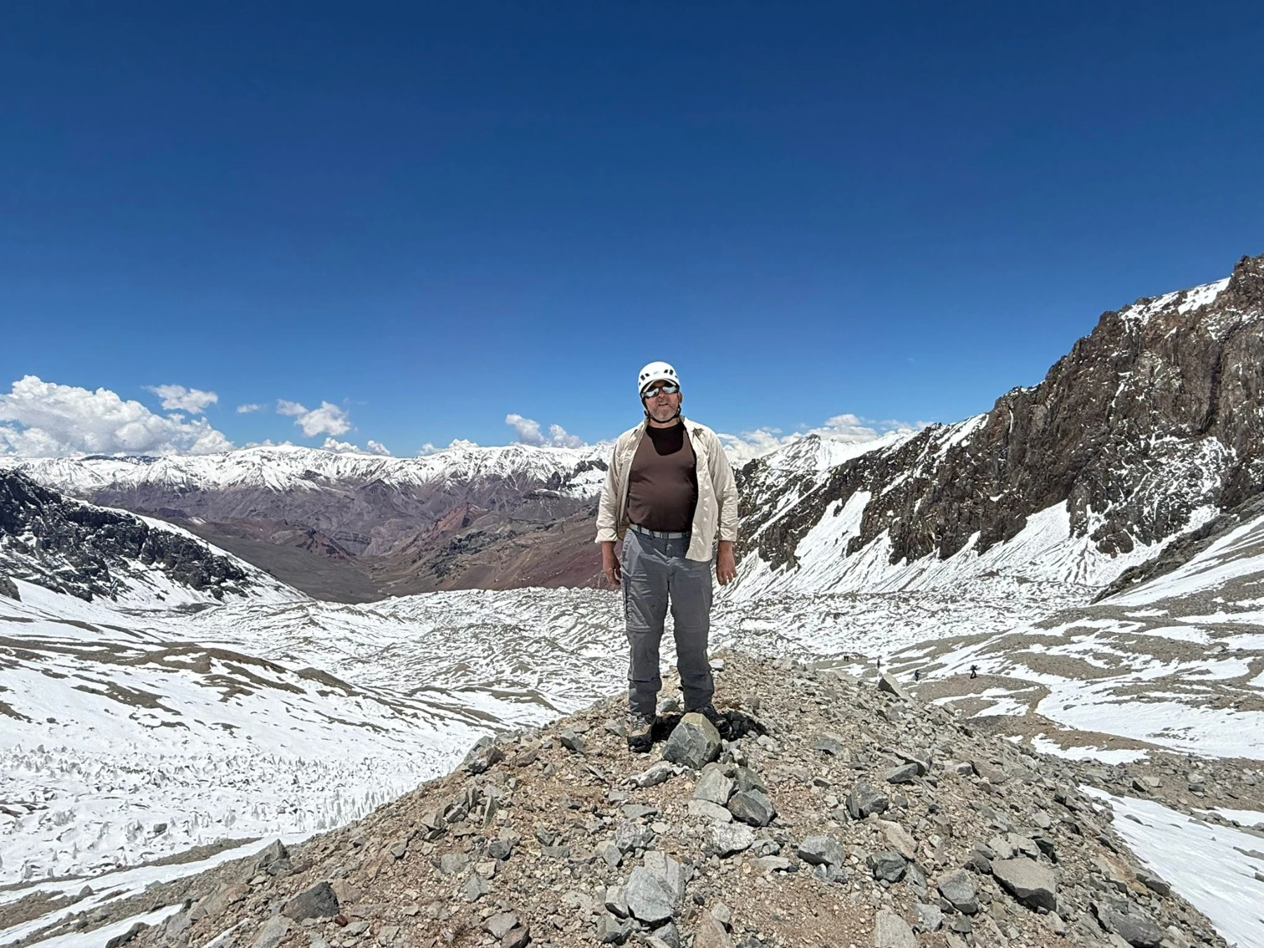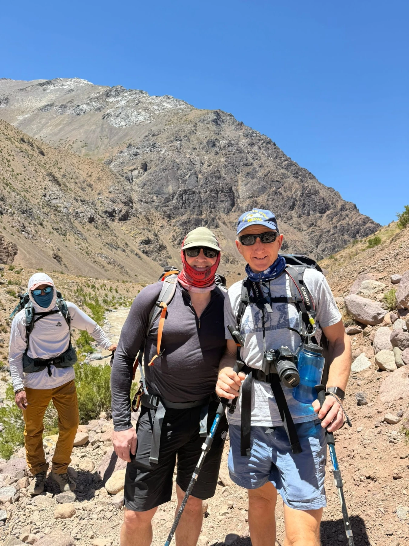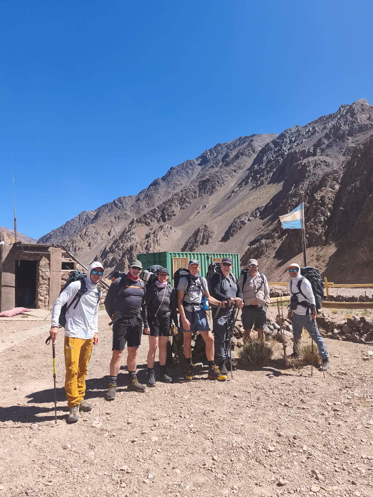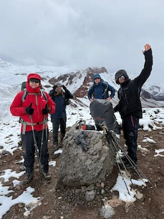 Steve has reported that the team have now arrived at Plaza Argentinas, the base camp on the Vacas valley side of Aconcagua. Tough day today to base camp at 4,200m, all arrived safely, 8hrs walking, all glad to see camp, started off cold and wet with rain and a very cold river crossing in Crocs, was like needles in our feet it was that cold, rain gave way to snow, then the cloud thinned giving some great views and a bit of welcomed warmth, we are looking forward to a rest day tomorrow before going to camp 1.