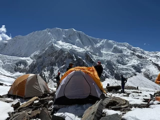 The team are now back at basecamp after a successful rotation to camp 2. Everyone is ready for a couple of days rest before continuing on up the mountain.
