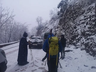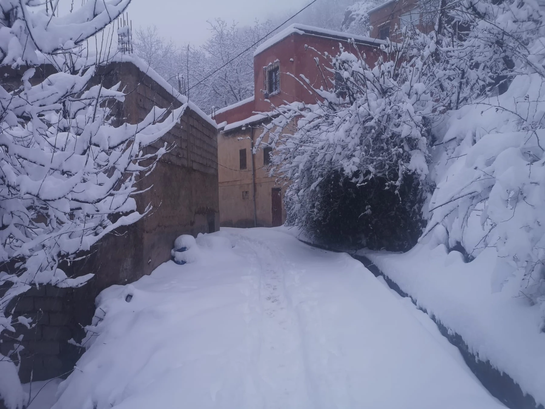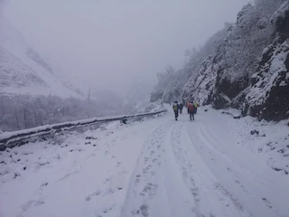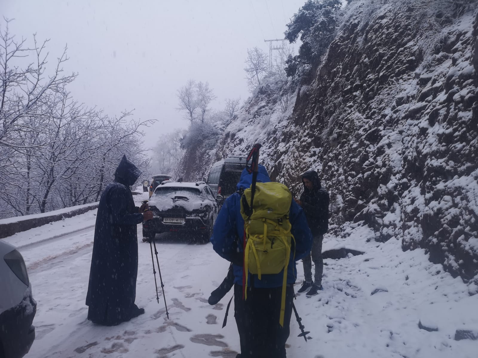 So, it was raining reasonably heavily in Marrakech. Which turned to snow when we got higher up towards the turn off for the ski resort. However, the road had been closed by the police, due to the snow conditions. So we had to turn tail and head to imlil. We got as far 1390m, about 7km from imil when we found vehicles couldn't get any further due to the snowy conditions. So, we got ready and started to walk. It only took 2 hours to reach imlil and we were welcomed to an amazing lunch at our hotel. We passed lots of coaches and cars stuck trying to get back down. Mohamed said it's very popular for locals to come for the weekend to imlil.
