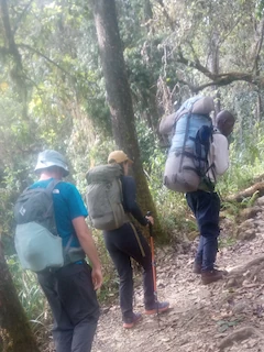 The team have now completed their first day of trekking on Kilimanjaro, taking them through the jungle zone of the mountain.