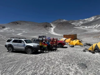 Today, the team broke through the 6000m barrier, by climbing the remote Volcano Copiapo.