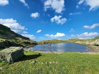 Day 3 | Luboten Hut → Brezovica via Livadica Lake (Kosovo). A beautiful trail day: forest paths, rocky technical sections, and the dramatic cliffs of Luboten. We stop for lunch and—if brave—a swim at Livadica Lake, then descend towards Brezovica in Kosovo. 14.5km with 12000m ascent and 1080m descent |