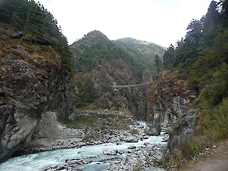 Day 3 An early morning transfer to Ramachap, to then take a short internal flight that takes us to the tiny airstrip town of Lukla and the gateway to the Sherpa Kingdom. After lunch we walk along the typically stony path that descends from the forested terraces of Lukla right into the Dudh Kosi valley and the brightly painted lodges of Phakding. Good views of Kusum Kanguru's North Face (6367m). 2 hours walking.