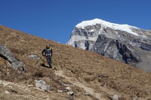 The day had finally arrived! It was time to head over 5420m Cho La Pass. We woke in Dragnag to cold, clear weather, and after packing our thickest gloves and jackets into our bags we left the stove-heated room in the teahouse and stepped into the chill. The daunting sight of the day before had sadly not changed, and trying our best to only look at the ground in front of our feet we started the ascent toward the beginning of the day’s main climb. The initial ascent was tough, and a combination of the altitude and gradient had a large effect on the pace. This did have the positive side-effect that during our many important breaks we could enjoy the frozen rivers, rising yaks, and red-tinged mountain tops that surrounded us. After this big initial effort we reached a plateau, and with it the sun! Continuing across the plateau we finally could see the finally climb of the pass, and any hope that the hardest part was behind us was quickly removed. The path wound it’s was over a tricky boulder field, then up an improbable looking slope looming above us. The climb happened in slow motion, an almost out of body experience as you commanded your legs to move – which they would do 5 seconds later. After an hour of struggle we could start to see open space above us; despite this motivation, the best we could manage was a laboured gasp over the top. No matter the method, it did not make a difference – we had made it over! The views helped bring some power back to our legs (with a little Mars bar assistance…), with the towering north Fface of Cholatse laughing down on our haggard expressions. We had another reason for excitement, as it was time for everybody to put on their new trail crampons to cross the dry glacier that stood between us and our destination of Dzongla. With everyone kitted up and ready to go we stepped out onto the ice, and enjoyed the change of surface – but this was no time to relax. The beast groaned and crackled be beneath us, and we kicked our way across to the relative safety of the rocks at the side. We came out onto rock smoothed by centuries of glacial activity. The warmer air and dropping sun on our faces told us that our journey was nearly done, and after an hour of descent we stumbled into Dzongla, exhausted but pleased.